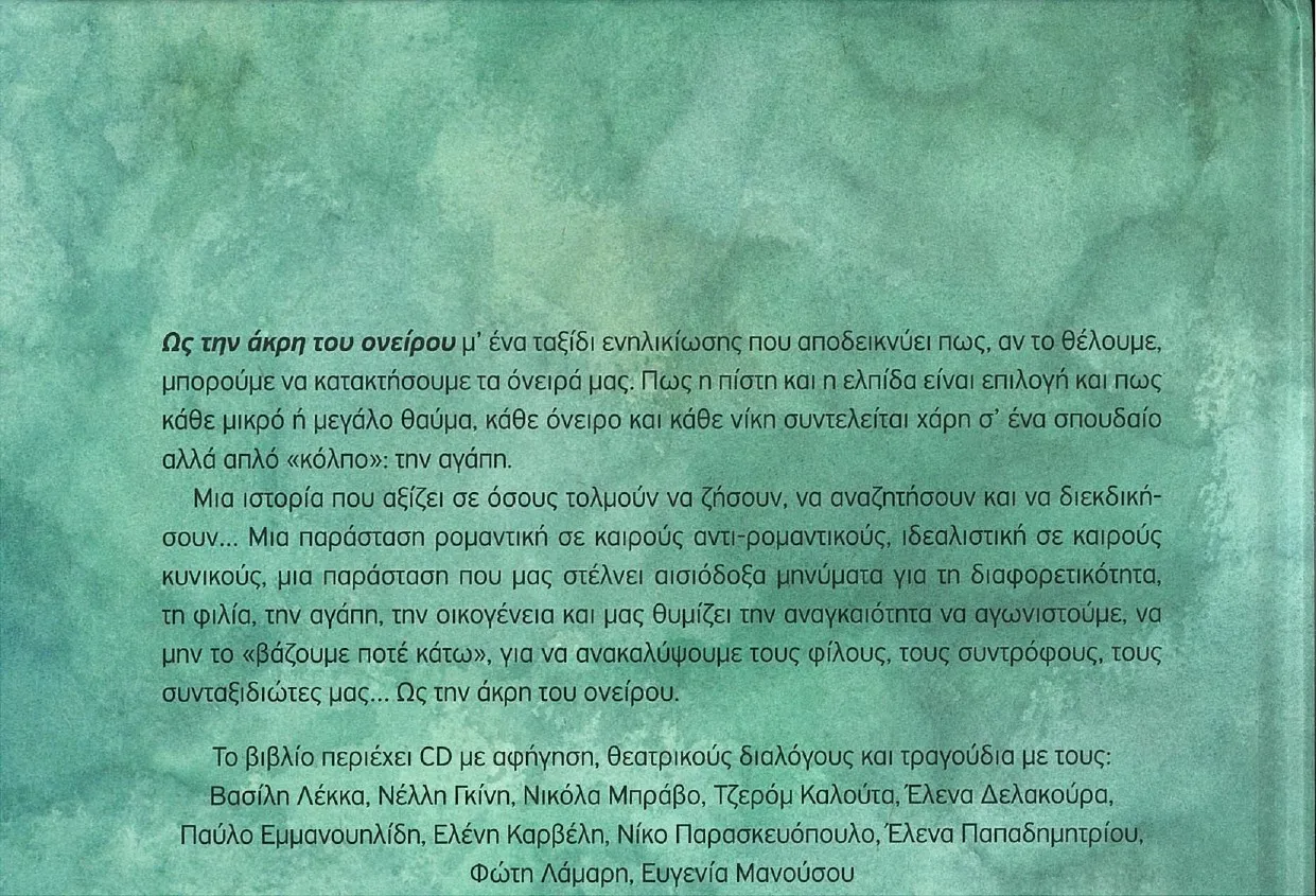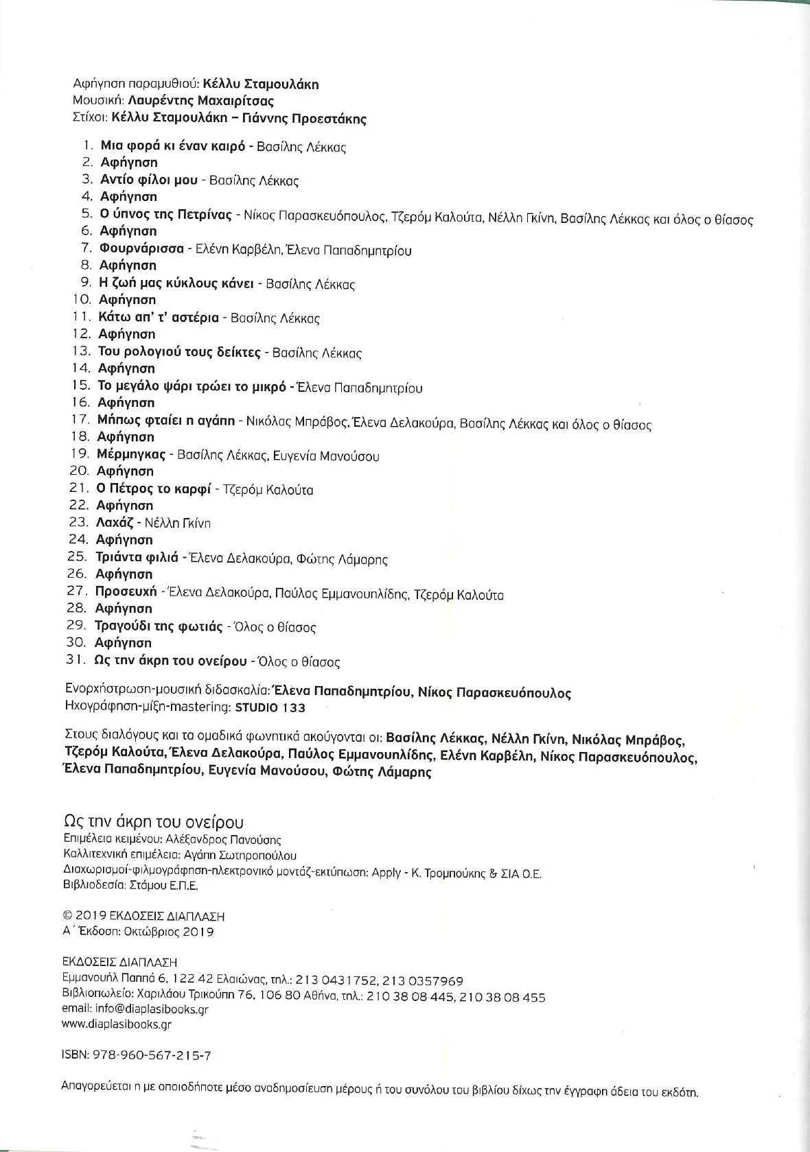 Το συνοδευτικό CD περιλαμβάνει θεατρικούς διαλόγους και τραγούδια, ερμηνευμένα από γνωστούς καλλιτέχνες: